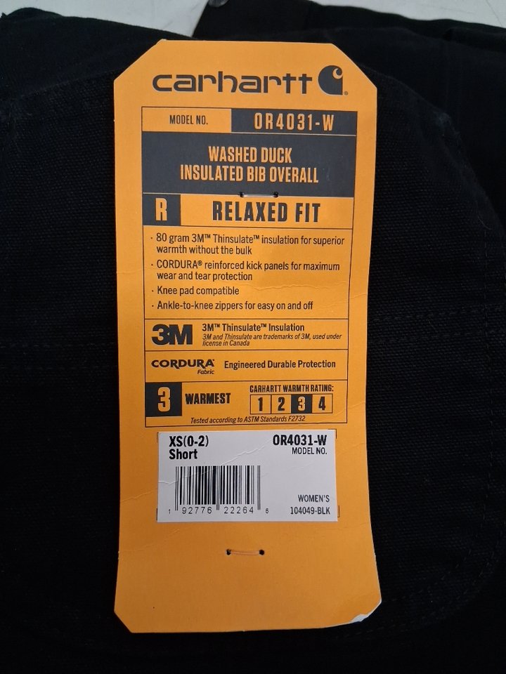 Women's Carhartt Relaxed Fit Washed Duck Insulated Bib Overalls - Extra Small Short - BLACK (STYLE: OR4031-W)