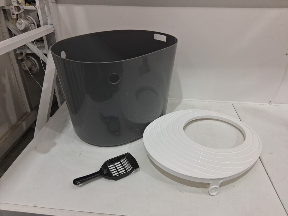 IRIS USA COVERED TOP-ENTRY SCATTER-PREVENTING CAT LITTER BOX WITH SCOOP - LARGE/20.47" x 16.14" x 14.56" - GREY/WHITE - (MODEL: PUNT-530)