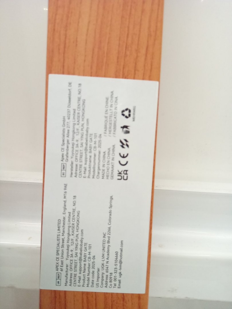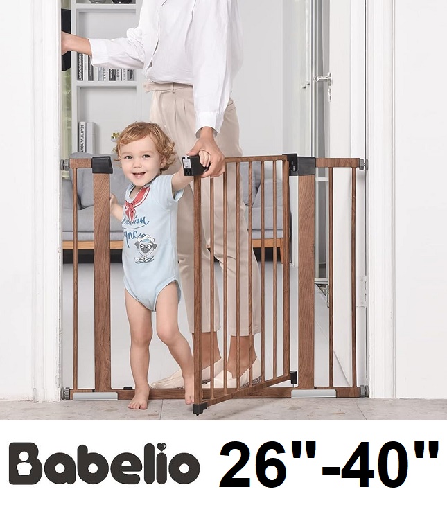 Babelio Pressure Mounted Metal Baby Gate - 26" to 40" - Wood Pattern (Model: cm-m-101)