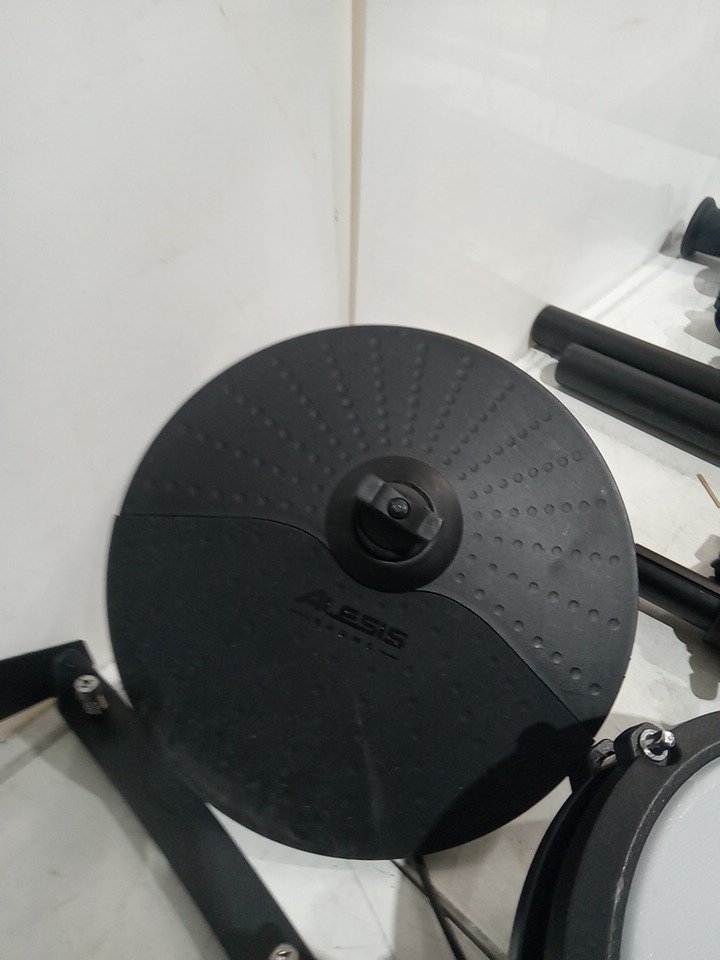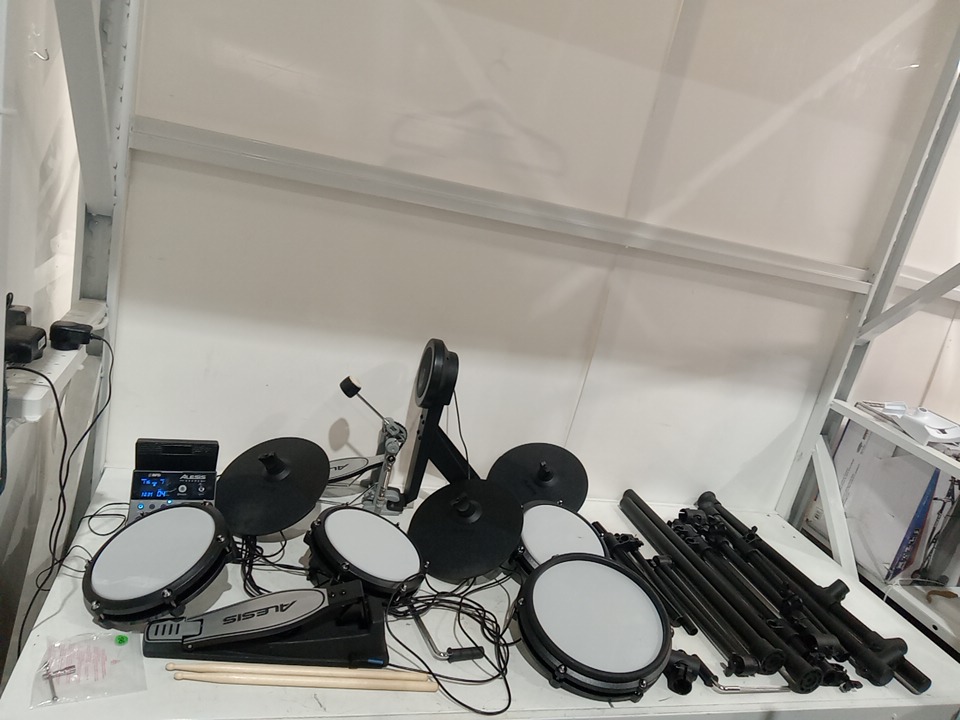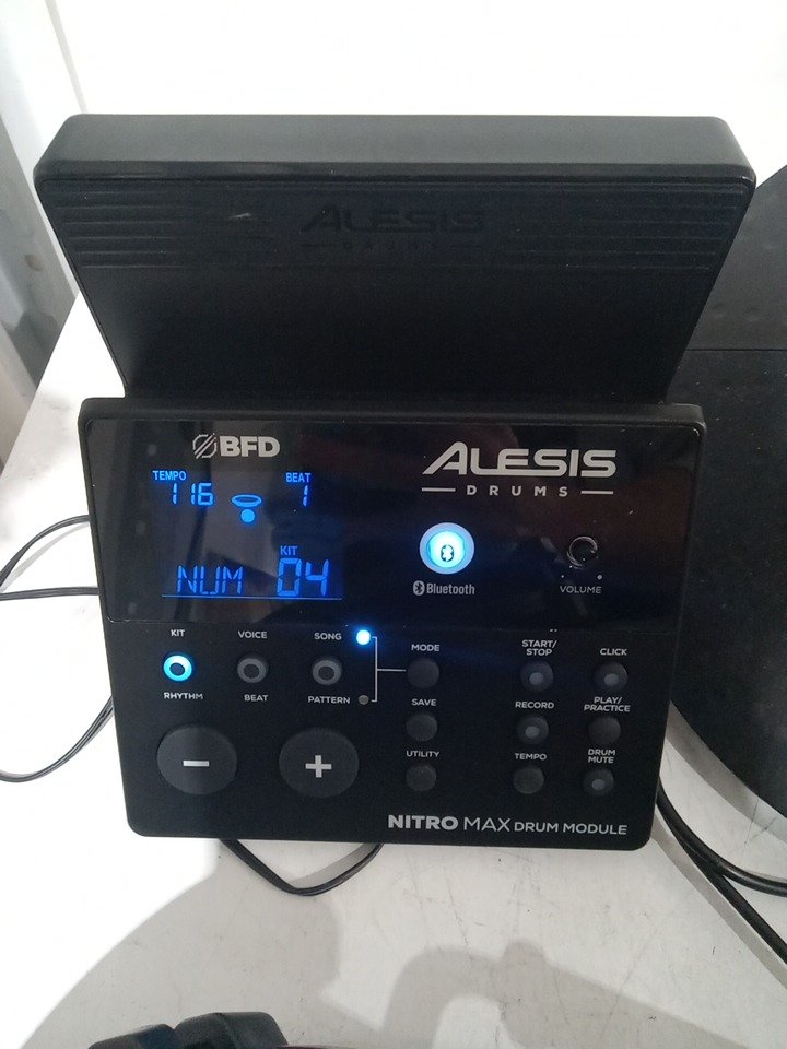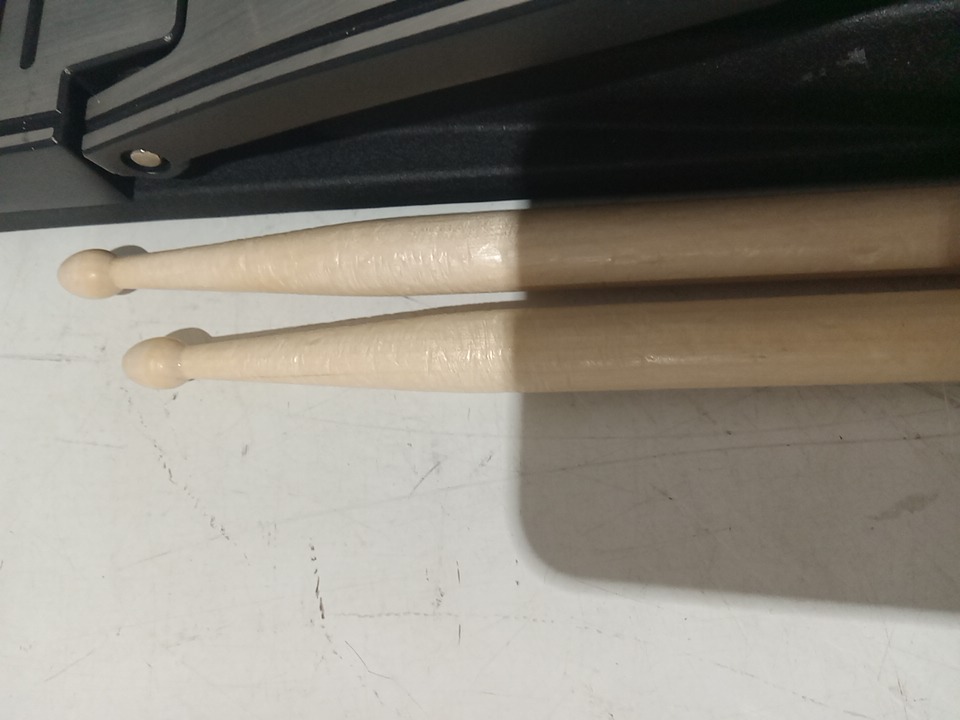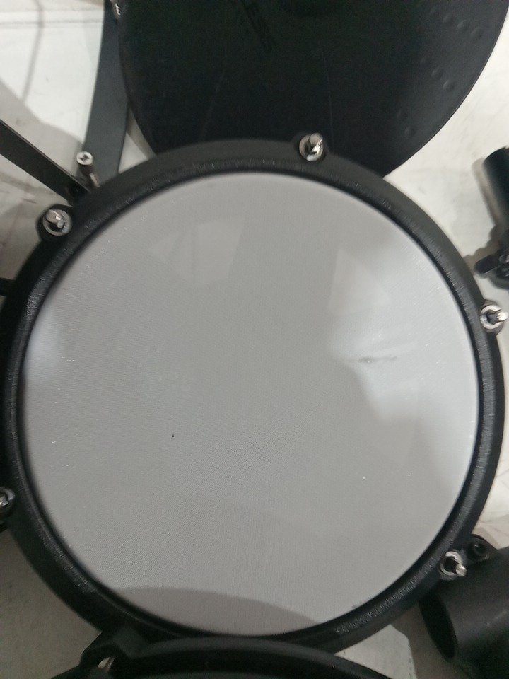 upon inspection we have found many black and white scuffs, blemishes, dust , fraying spots on this item and some chipping on the drum sticks indicating prior use, their is some white dust on the kick drum due to prior use, their are scuffs and dust on the frame pieces for the drum kit due to previous use, we have no instruction manual meaning we were unable to confirm all vital frame parts for assembling the kit are present, however through inspection we have found that it seems like all the frame pieces for building the kit are present. we were unable to test this drum kit for sound as we do not have access to an external sound source as required for testing sound (eg aux headphones or powered speakers/amps) however, we did find that by using the beat timing minigame that is included with the drum kit, we were able to test the item for its ability to pick up the drums that were being played, and we can confirm that it does pick up the beats being played as when we hit the snare the message "good" showed up on the control panel, indicating that i hit the snare on beat correctly, however we still cannot test for sound as we do not have the required audio source. see photos below