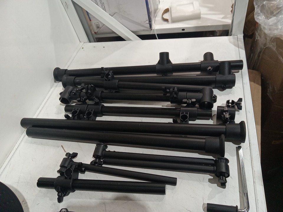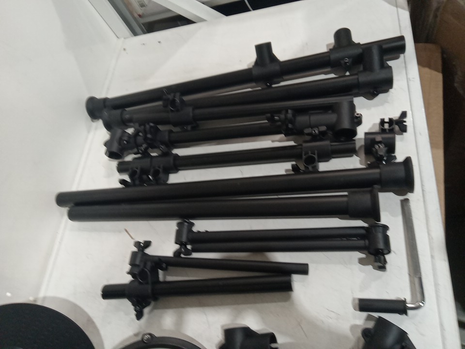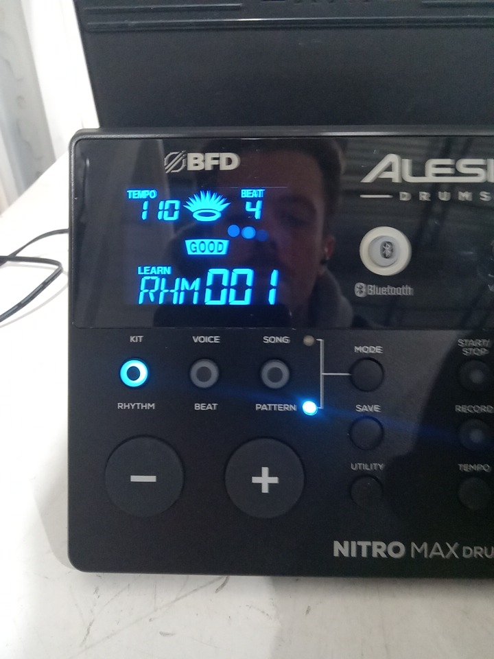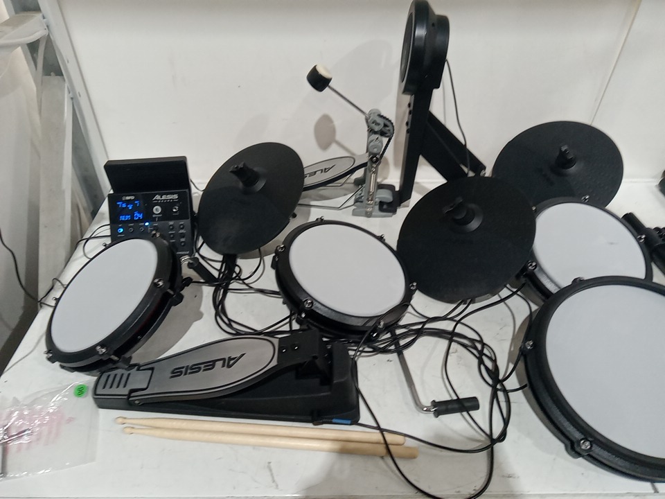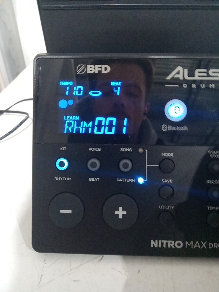 upon inspection we have found many black and white scuffs, blemishes, dust , fraying spots on this item and some chipping on the drum sticks indicating prior use, their is some white dust on the kick drum due to prior use, their are scuffs and dust on the frame pieces for the drum kit due to previous use, we have no instruction manual meaning we were unable to confirm all vital frame parts for assembling the kit are present, however through inspection we have found that it seems like all the frame pieces for building the kit are present. we were unable to test this drum kit for sound as we do not have access to an external sound source as required for testing sound (eg aux headphones or powered speakers/amps) however, we did find that by using the beat timing minigame that is included with the drum kit, we were able to test the item for its ability to pick up the drums that were being played, and we can confirm that it does pick up the beats being played as when we hit the snare the message "good" showed up on the control panel, indicating that i hit the snare on beat correctly, however we still cannot test for sound as we do not have the required audio source. see photos below