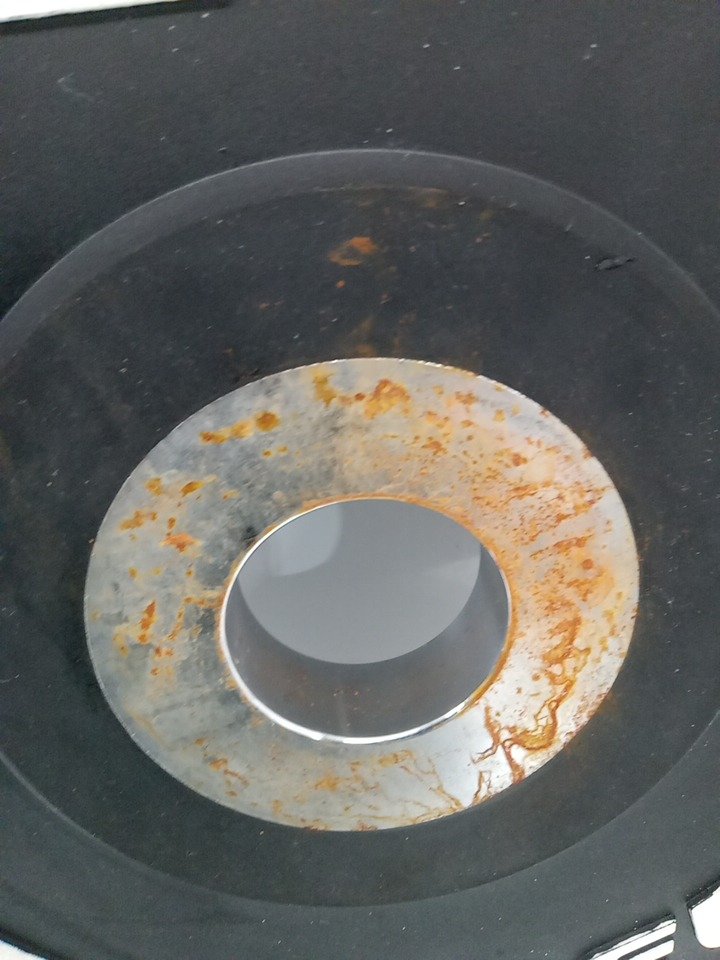 There are brown stains on the back side of the plate and scratch marks on the sides due to shipping. (Please see photos)