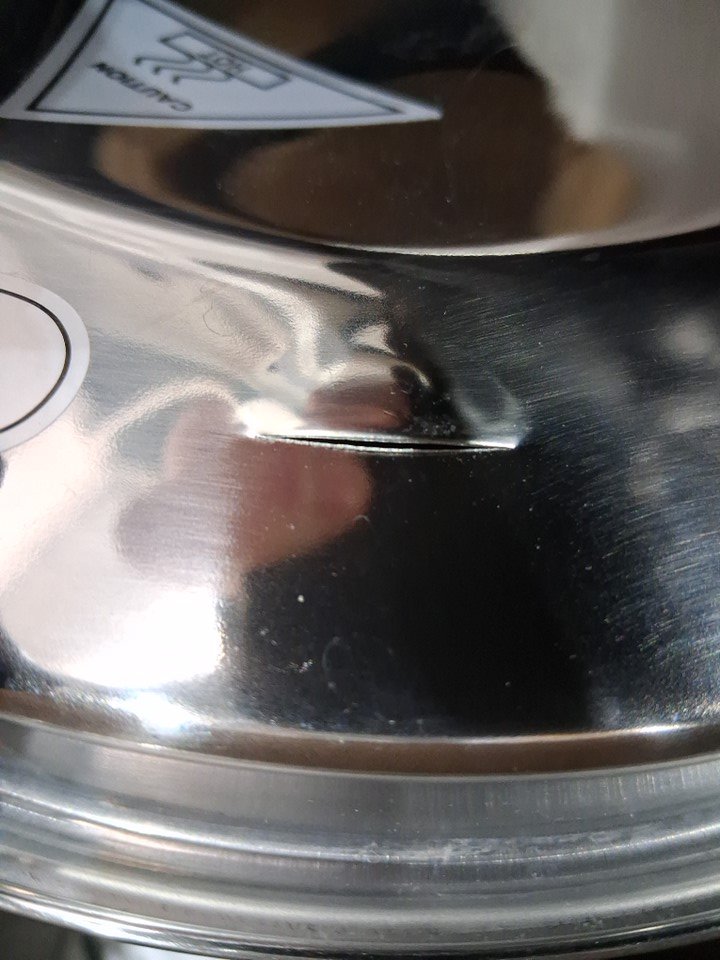 There is a cut in the lid (see photo) Item has some marks/stains inside from prior use