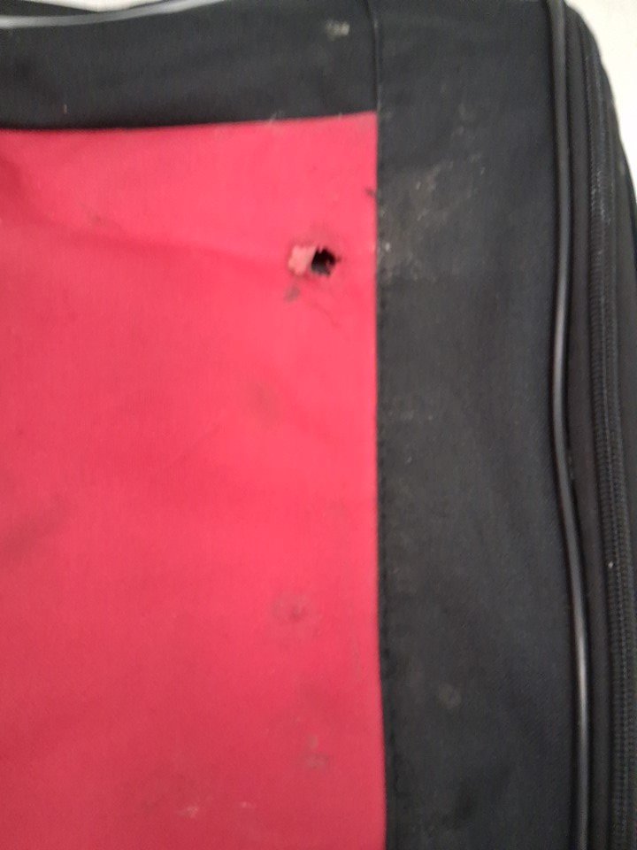 The item has some dirt, a small hole, and the wheel shows signs of prior use.