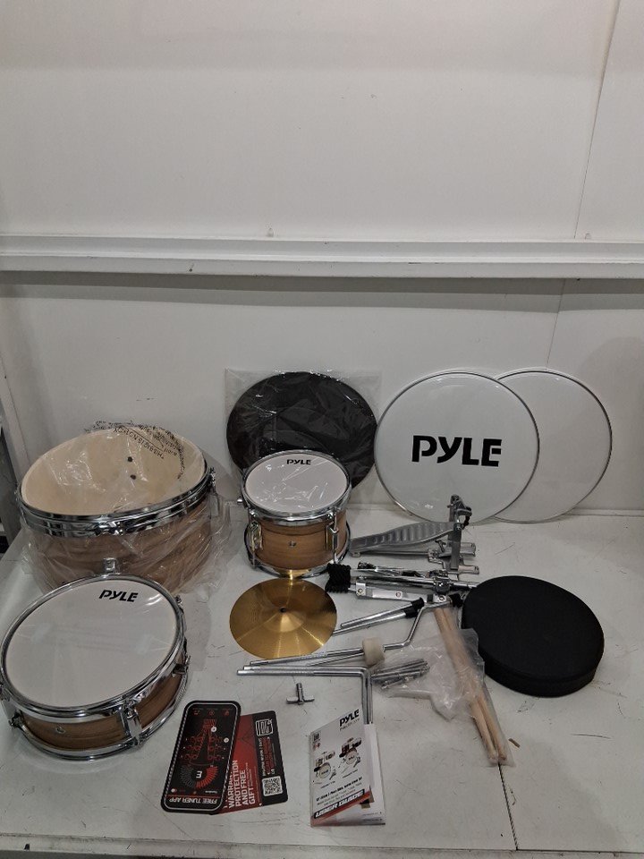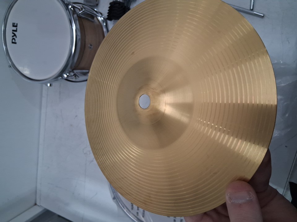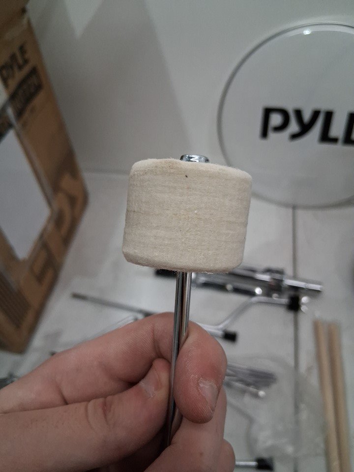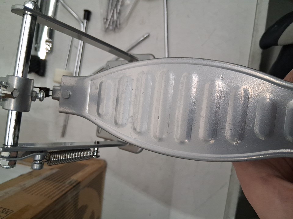 There is scuff marks on pedal, cymbal and bass drum stick from previous use. Some of the metal pieces also have scratch marks on them due to shipping.