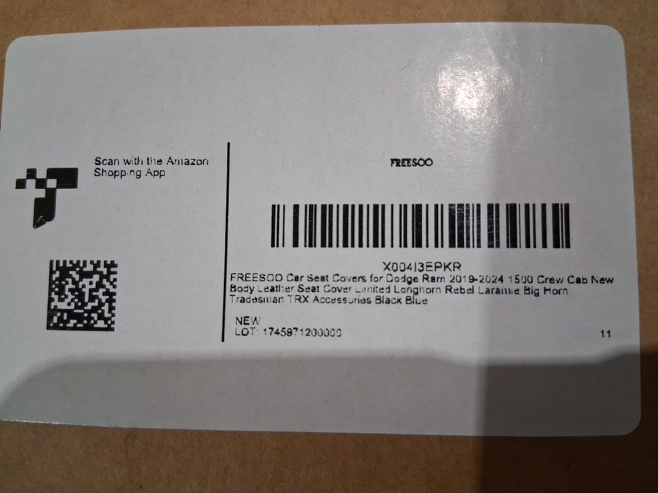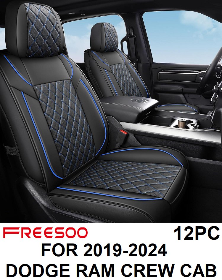 12PC FREESOO CAR SEAT COVER SET FOR 2019-2024 1500 CREW CAB - BLACK/BLUE