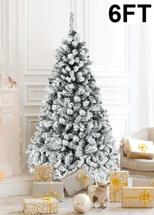 costway artificial pine snow flocked prelit christmas tree - 6ft -green/white