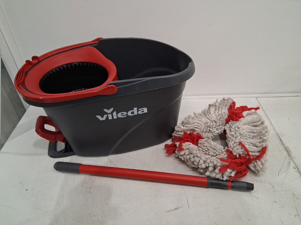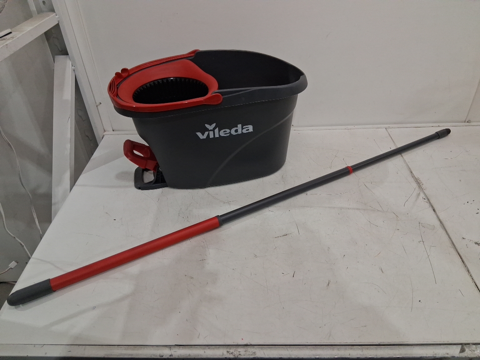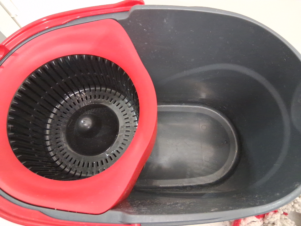 Please note the mop and bucket show signs of previous use with dirt on the mop head and water marks/smudging inside the bucket, see photos.