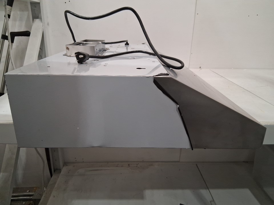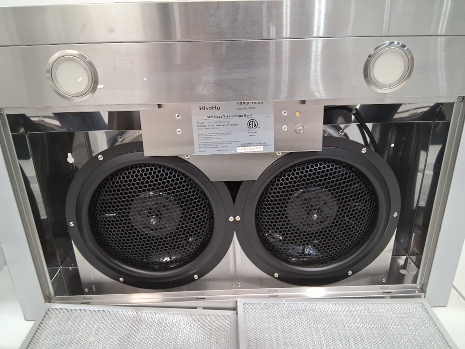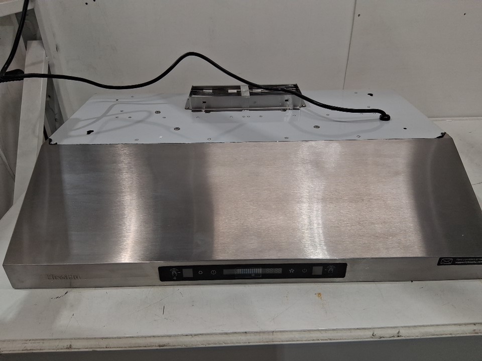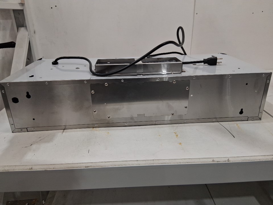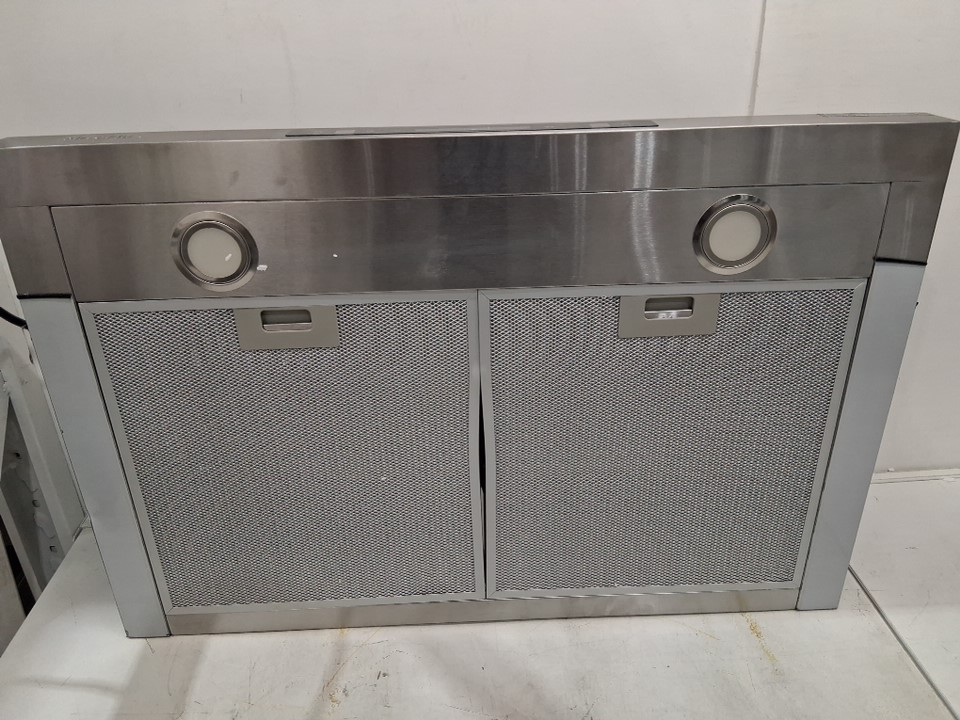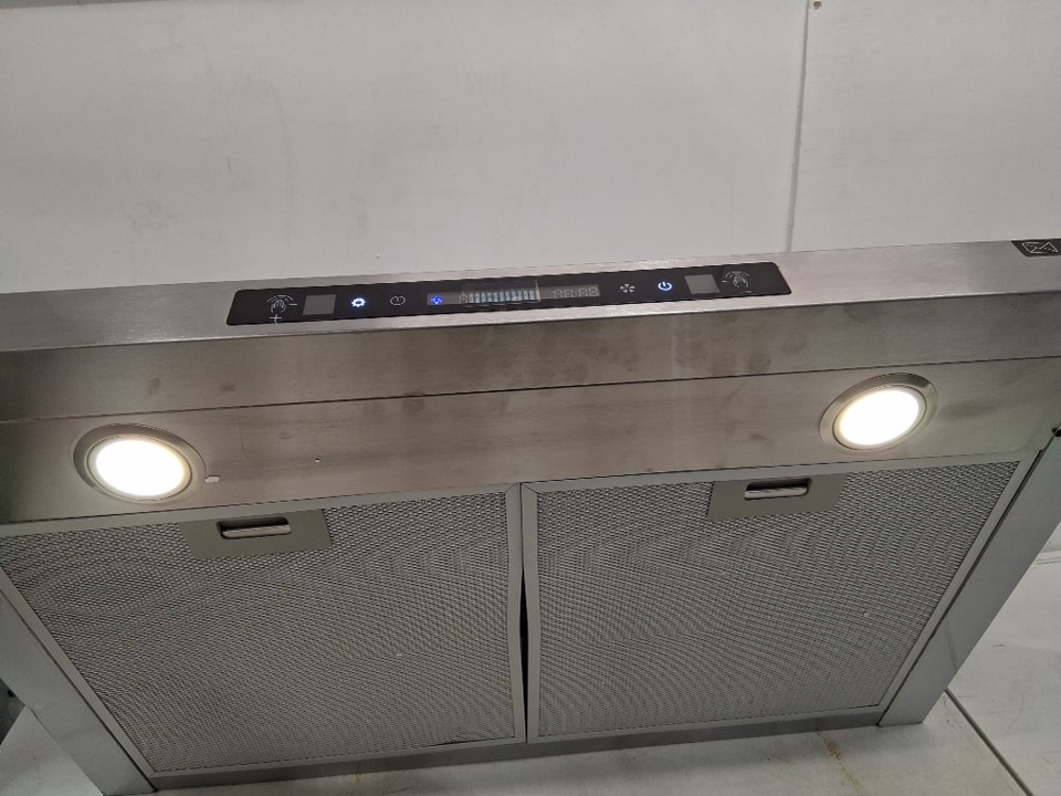 The vent covers appear to be slightly dented near the center of the hood due to shipping, and there are also some light smudges/fingerprints on the stainless steel due to handling - see photos. Otherwise, there are no visible issues with the range hood and all functions appear to work normally.