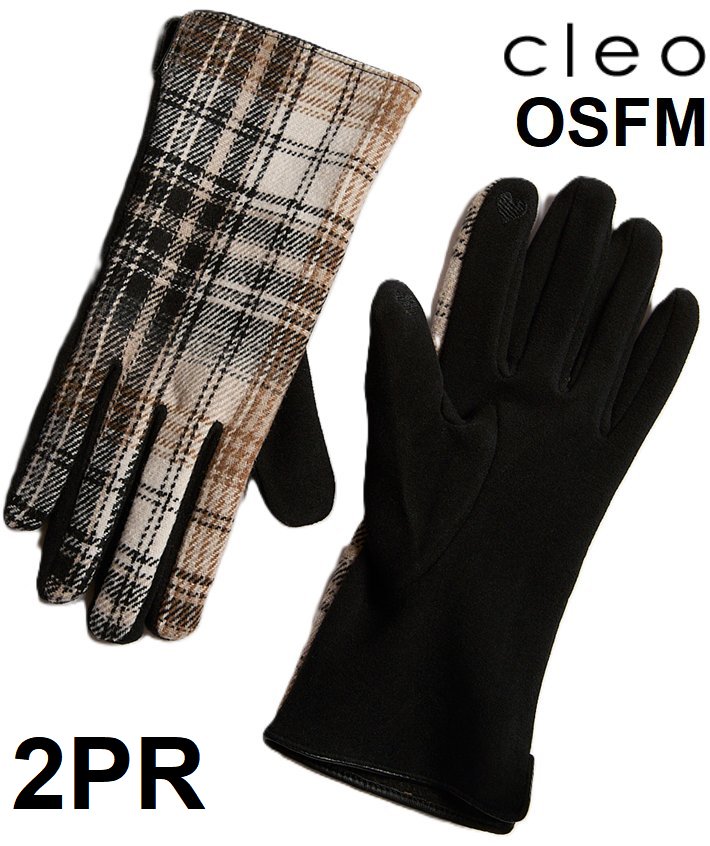 2pr WOMEN'S CLEO Cloth plaid Detail winter Gloves - osfm - camel brown / black