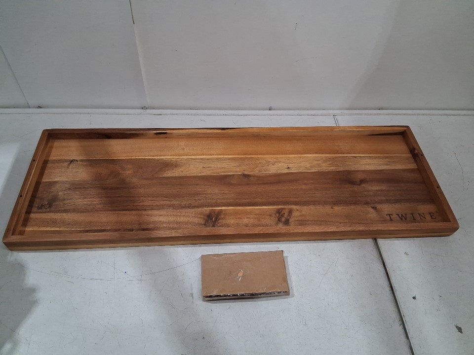 twine living co. modern manor decorative display longboard charcuterie cheese board platter with handles - 12" X 36" - acacia wood (model: 11364)