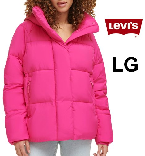 WOMEN'S LEVIS SELMA HOODED PUFFER JACKET - large - hot pink (model: lw3rp696)