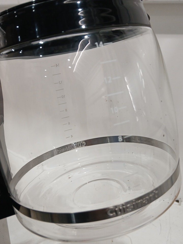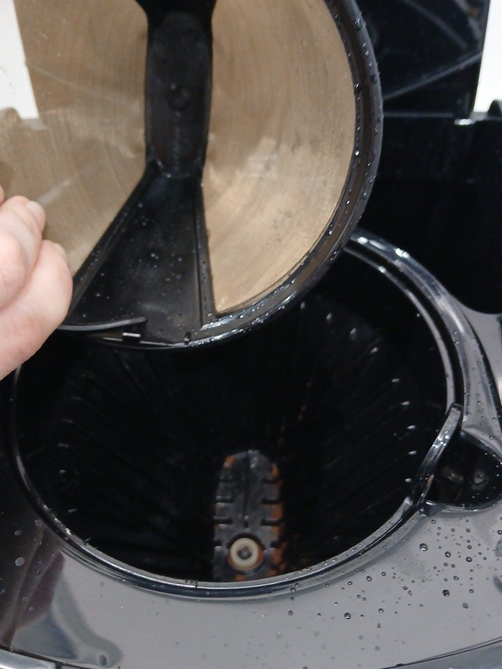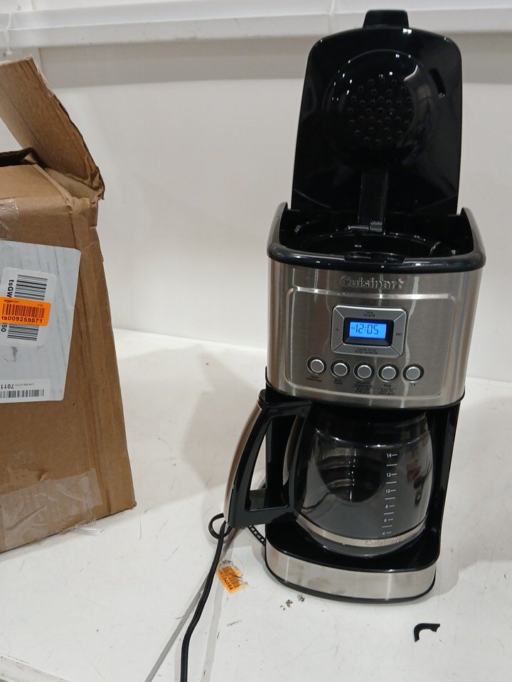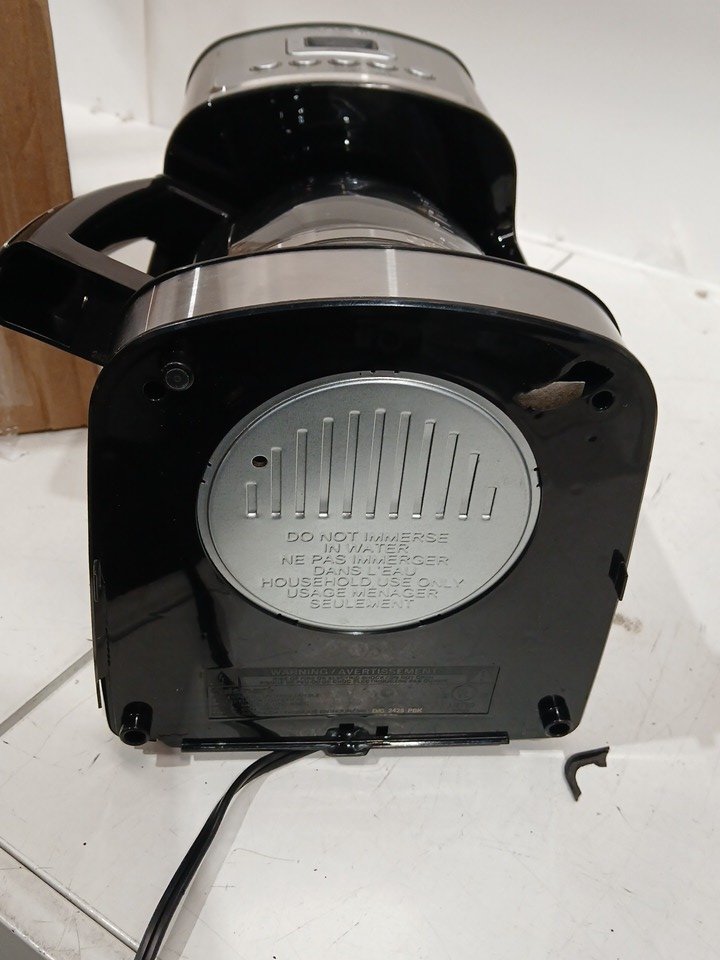 Tested for power. The base has a hole inside and the filter and pot show signs of use.