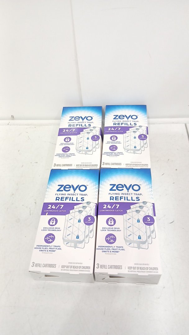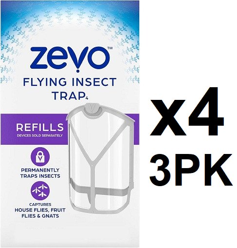 4 (3PK) zevo flying insect refill CARTRIDGES for indoor light trap - white/grey (12 TOTAL)