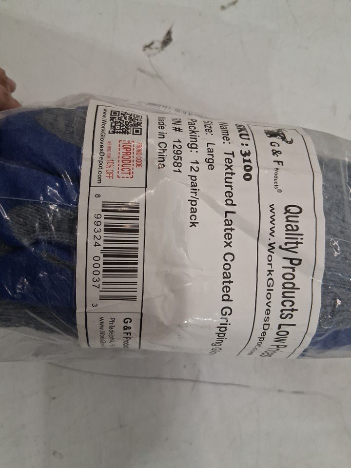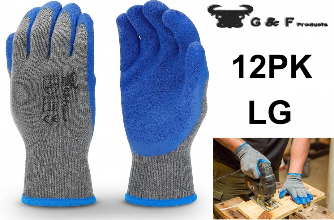 12PK G & F Products Value Textured Latex Coated Gripping Gloves - large - Blue/Grey (model: 3100)