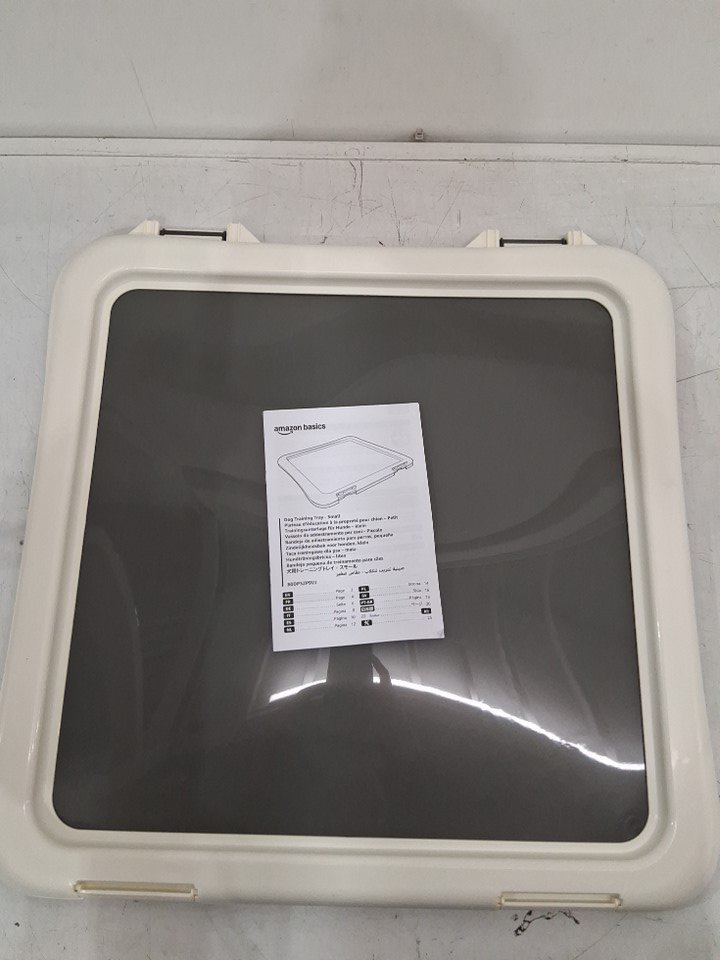 Amazon Basics Dog Training Pad Tray with Secured Latches - 22" x 22" - White/Charcoal Grey (Model: TFPT-S)