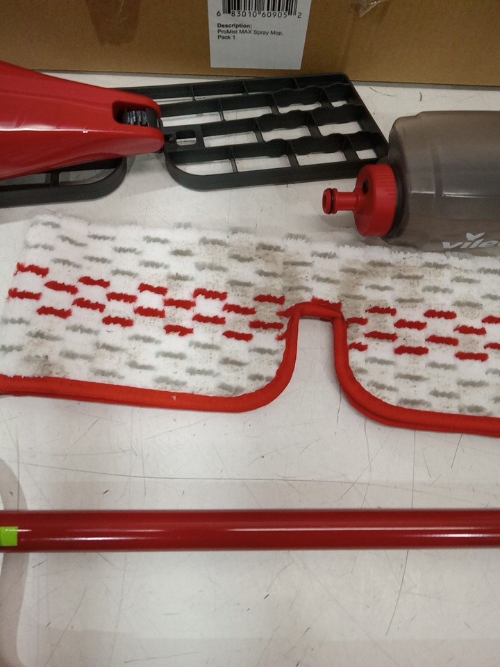 Dirt on the mop pad and water drops in the tank, can likely be cleaned.