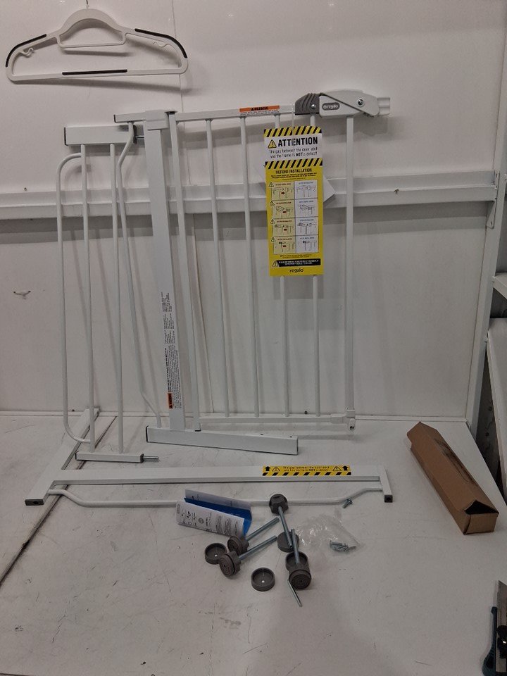 REGALO EASY-STEP METAL WALK-THROUGH SAFETY GATE - 30" x 29'' to 38.5'' - WHITE - (MODEL: 1160DS)
