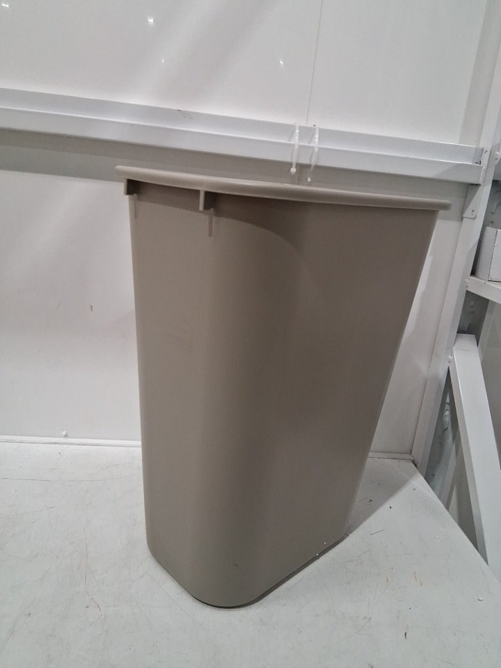 rubbermaid plastic tall desk-side open top garbage trash can - 10.2gal - beige (model: 295700BG)
