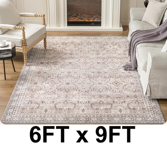 Istana Elegant Boho Non Slip Machine Washable Area Rug - 6FT x 9FT - Blush / Grey - (Model: R02-6x9-BG)
