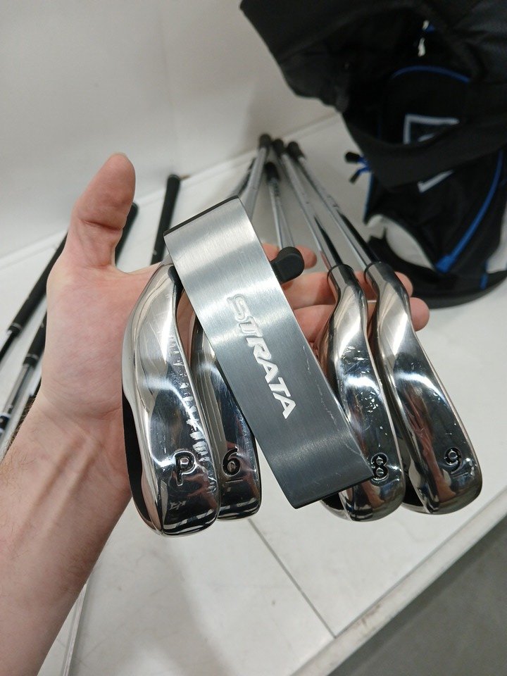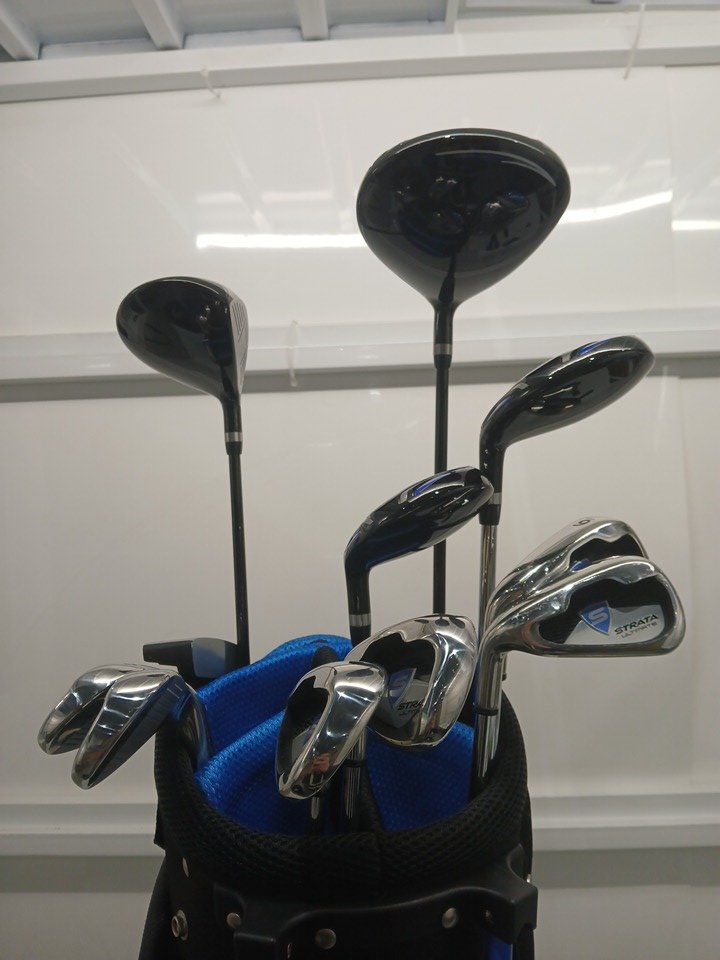 16PC MEN'S CALLAWAY GOLF STRATA ULTIMATE TITANIUM REGULAR GOLF SET WITH STAND BAG - LEFT HAND - BLUE