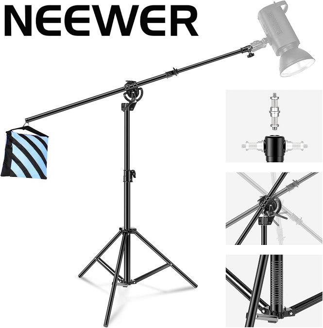 Neewer 2-in-1 Photography Light Stand, Heavy Duty Tripod Stand with 3.8ft Boom Arm and Empty Sandbag for Video - BLACK (MODEL: ST-CB)