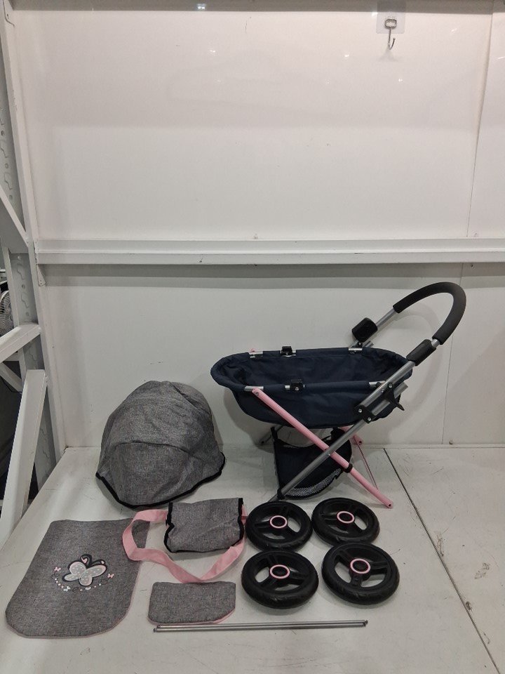 Bayer Dolls Pram Cosy Butterfly Baby Doll Stroller - 18" - GREY/PINK (MODEL: 12727AA)