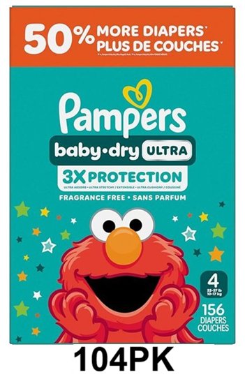 104pk Pampers Baby Dry Ultra Diapers - size 4 - elmo sesame street