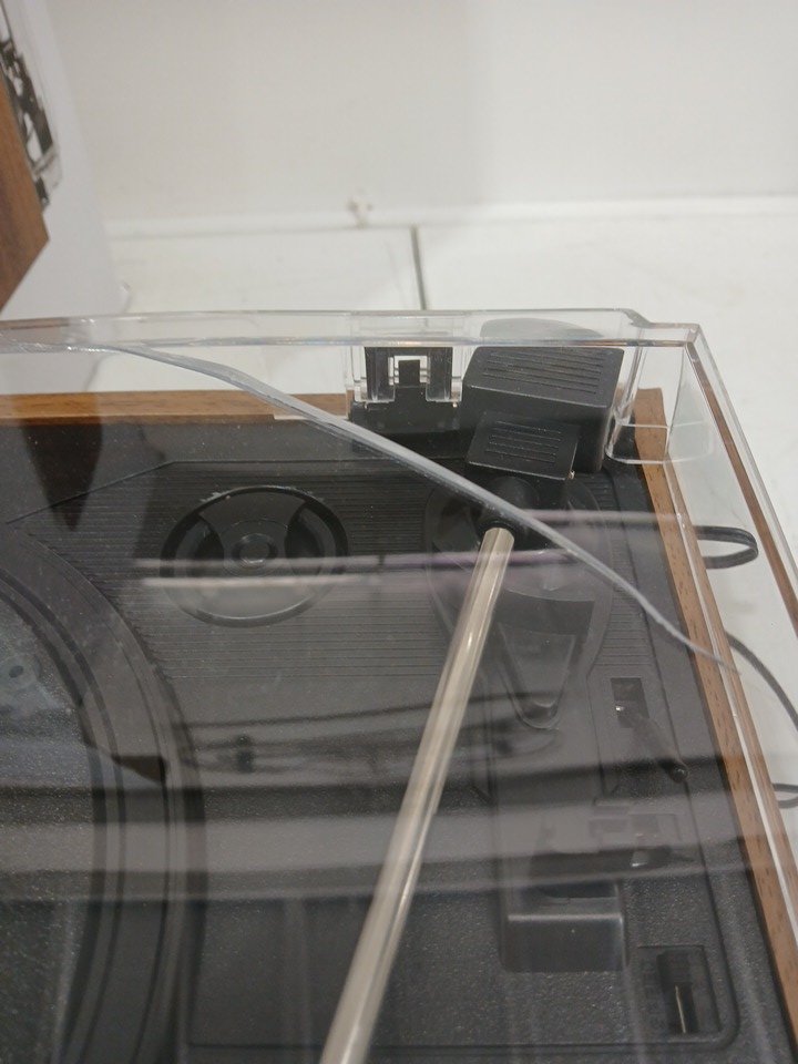 Tested for power and sound. The lid is cracked.