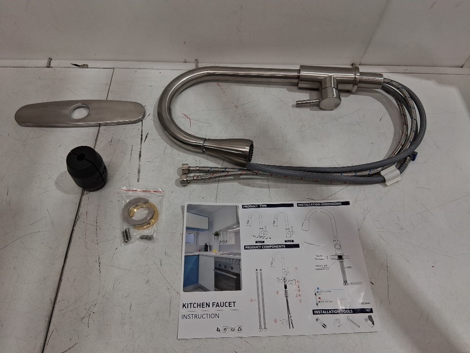Stainless Steel Kitchen Sink Faucets with Pull Down Sprayer - silver