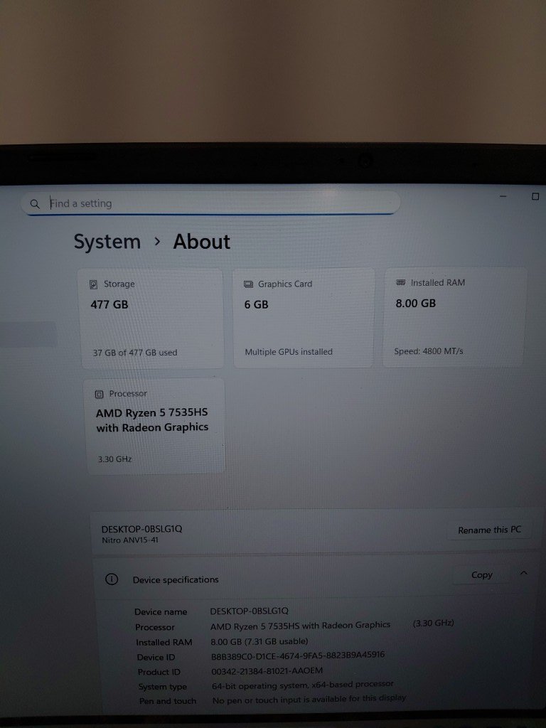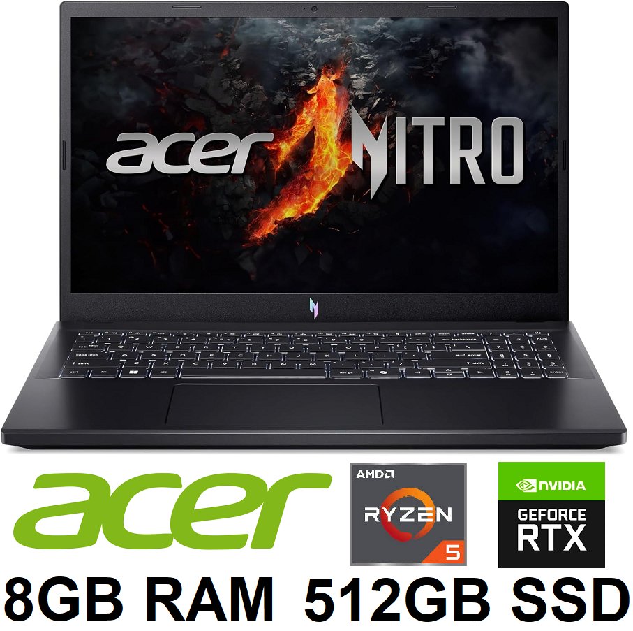 Acer NITRO 15.6" FHD Laptop, AMD Ryzen R5 7535HS, NVIDIA GeForce RTX 3050, 8GB DDR5, 512GB SSD, Windows 11
