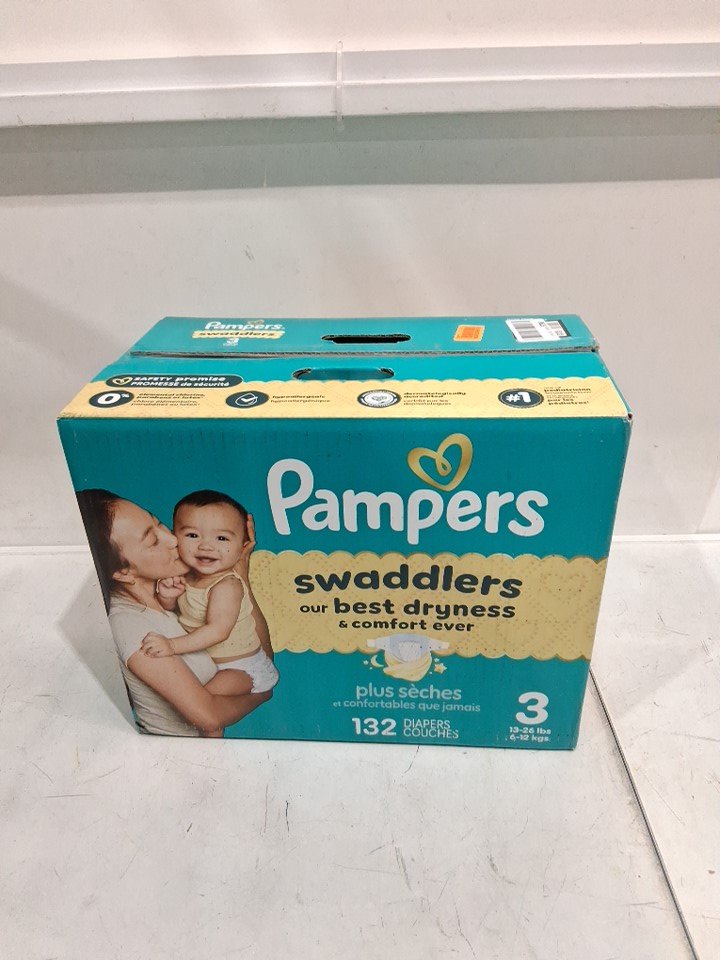 132PK PAMPERS SWADDLERS DIAPERS - SIZE 3 (13LB - 26LB)