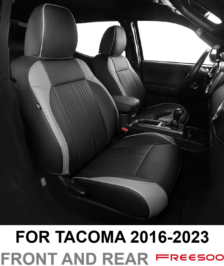 FREESOO Full Coverage Seat Cover FOR TACOMA 2016-2023, Double/Crew Cab SR/SR5/Limited/TRD Pro/TRD Sport - Black Grey