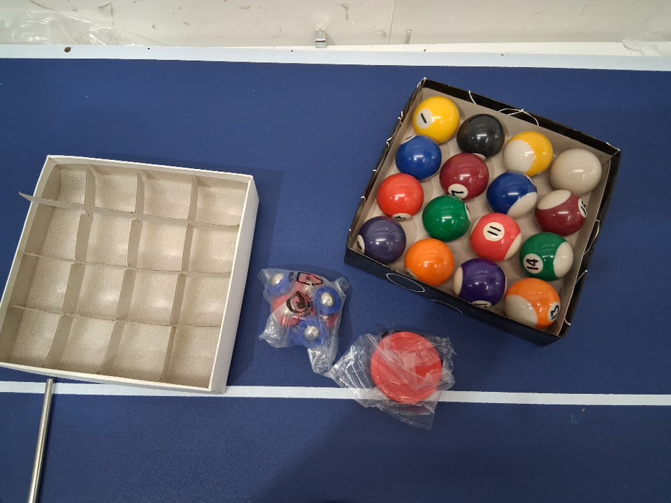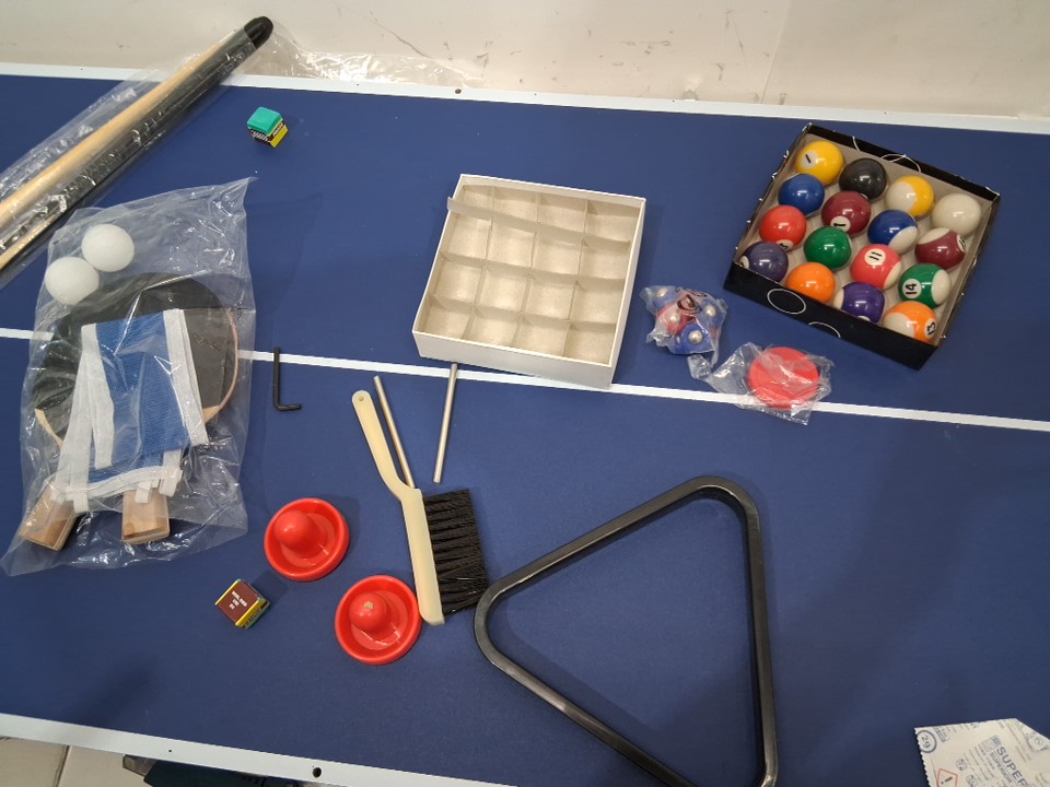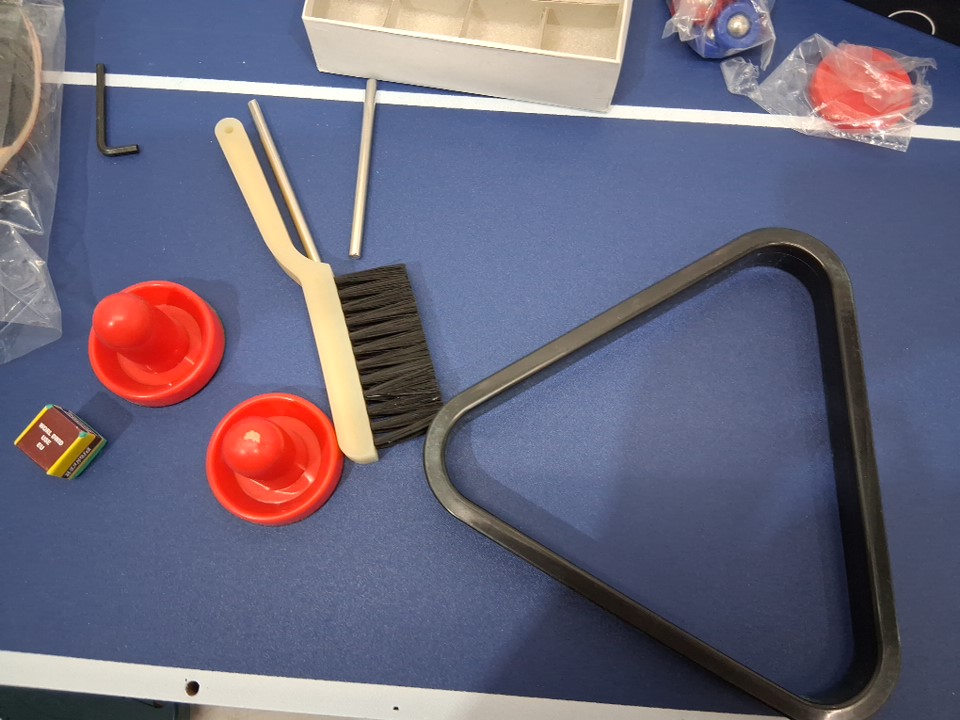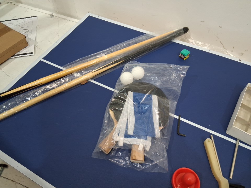 scuff marks on back of the table and items previously opened showing previous use.
