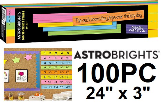 100pc Astrobrights Colored Sentence Strips - 24" x 3"/ea - multicolor - (model:91992)