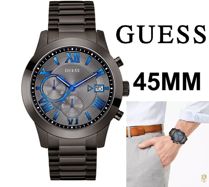 MENS guess atlas chronograph watch-45mm- grey dial / grey strap (model: uo668g2 )