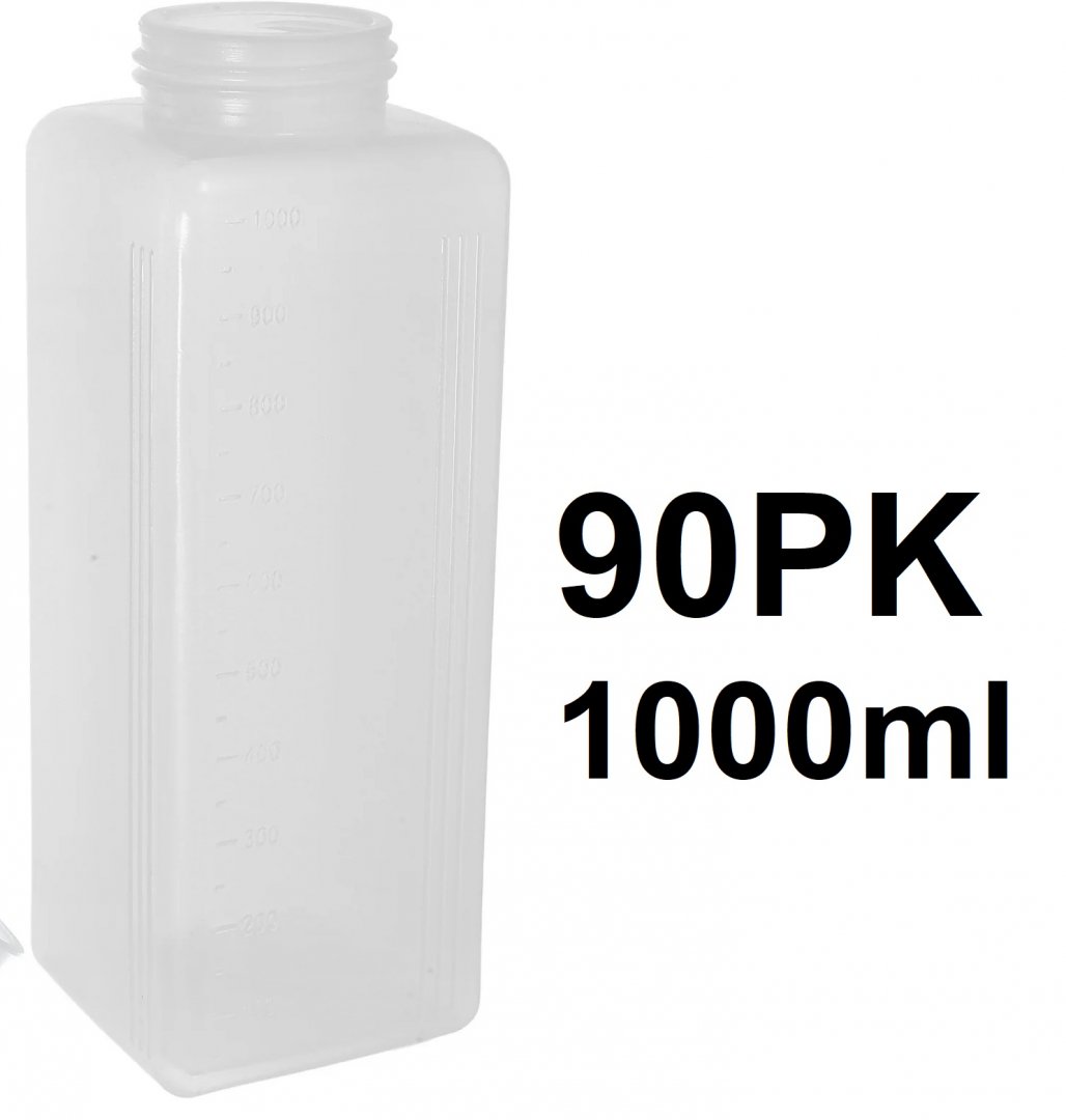 90pk plastic bottles without caps - 1000ml - clear