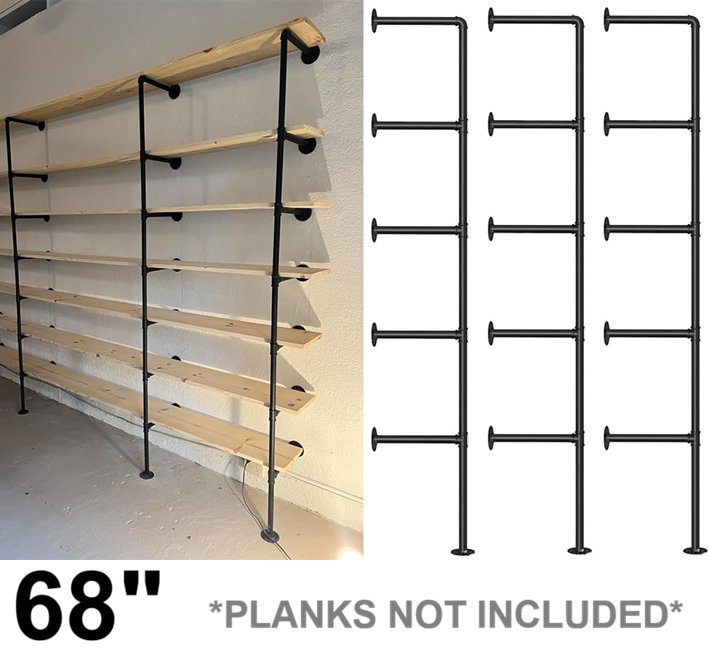 3PK KALER 5-TIER INDUSTRIAL PIPING BOOKSHELVES - 68" - BLACK/SILVER