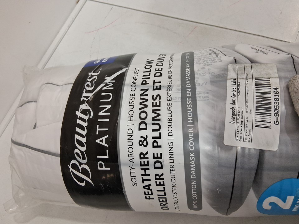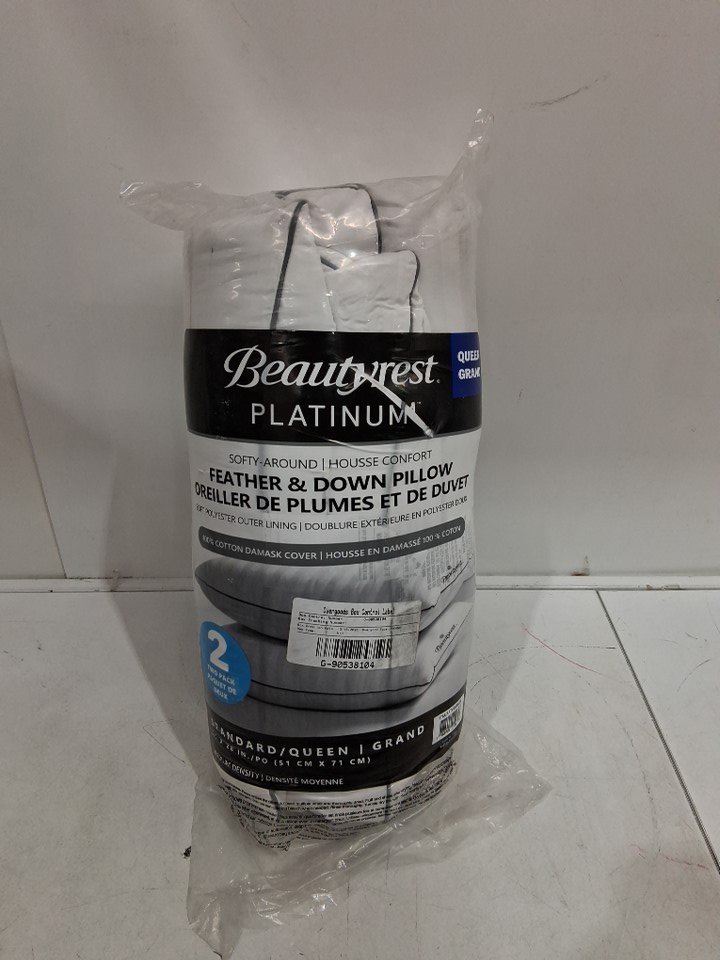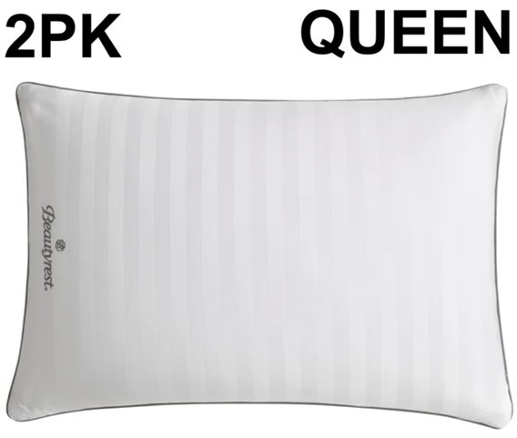 2PK Beautyrest Medium Density Platinum Feather and Down Pillow - Queen/Standard - 20" x 28" - White/Gray - (Model: 6688008)