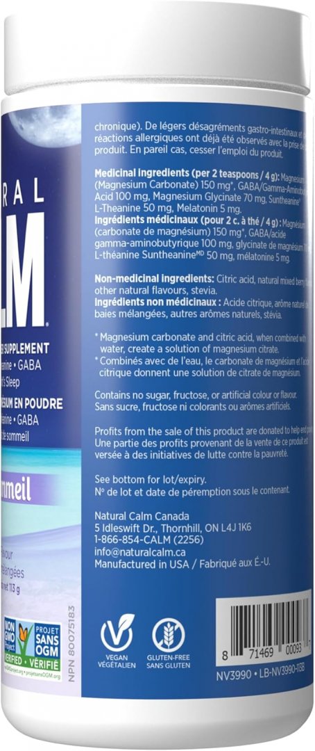 Natural calm Magnesium Powder Supplement Sleep - 113g - Mixed Berry
