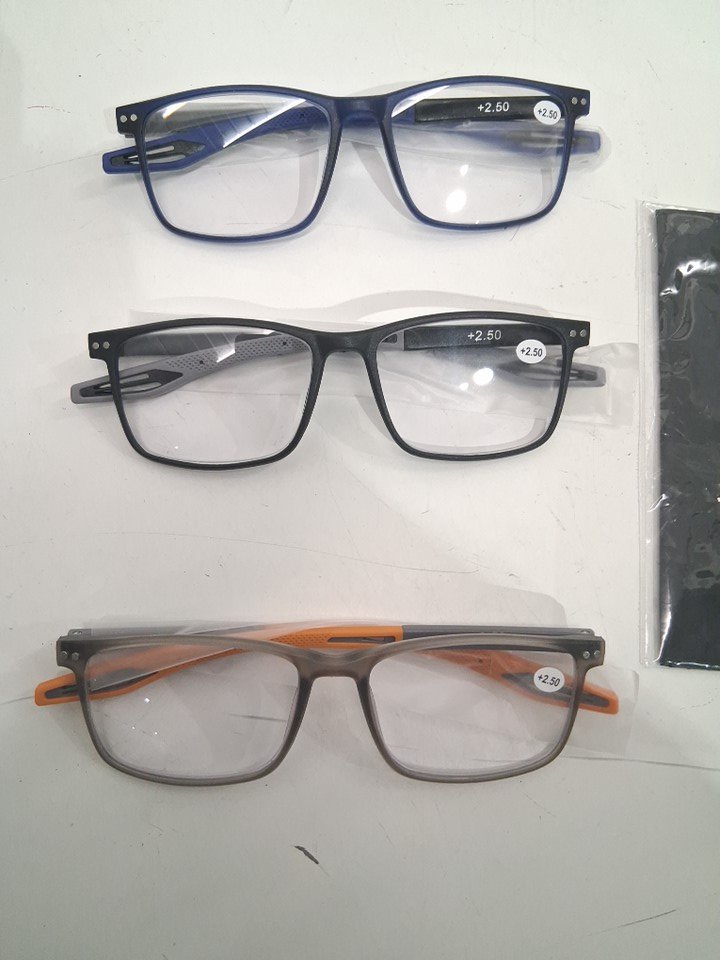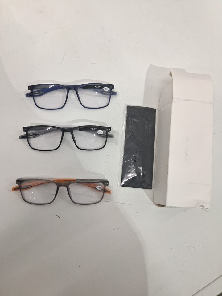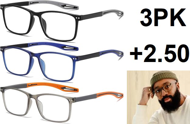 3PK MENS Reading Glasses Blue Light Blocking - + 2.50 - ORANGE/GREY/NAVY