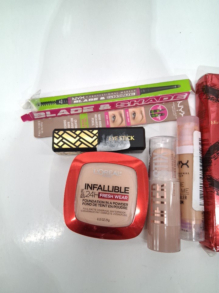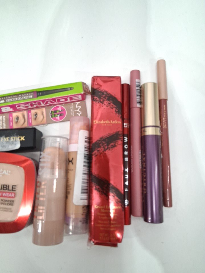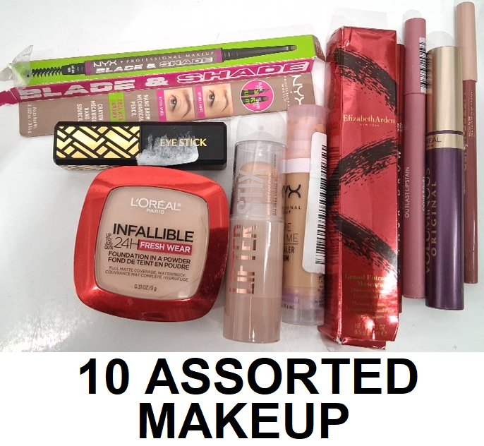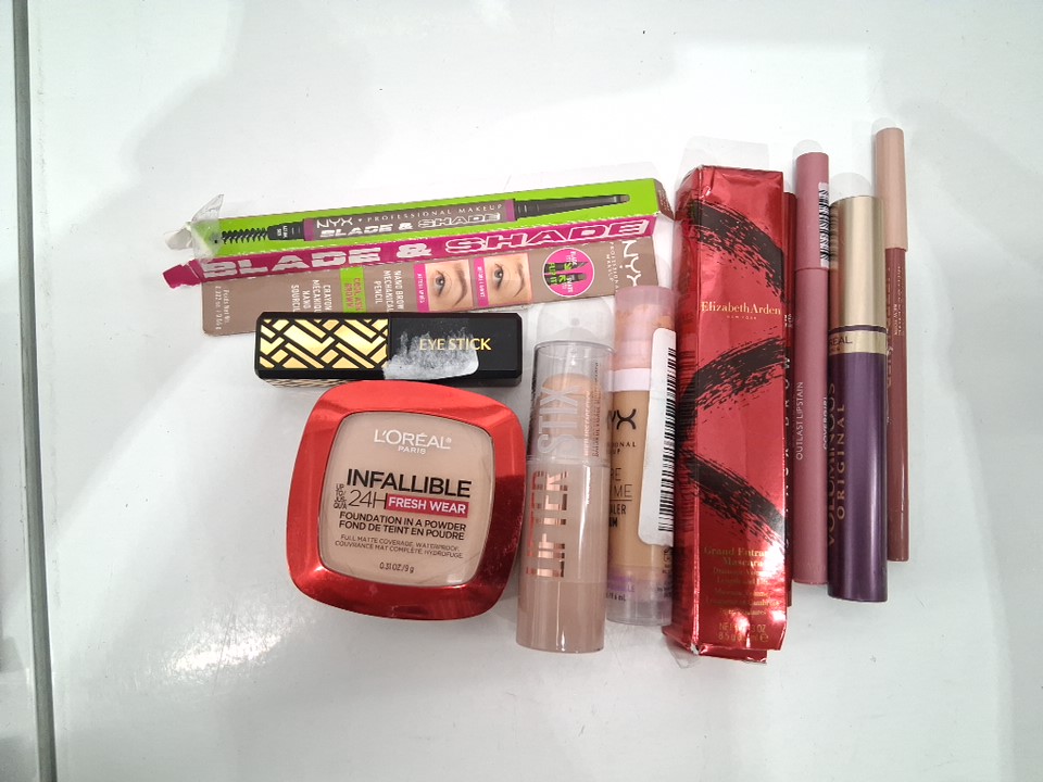 10 assorted makeup products - assorted brands, shades and types - powder foundation / concealer / mascara / brow pencil / eyestick / lip stain / lip liner
