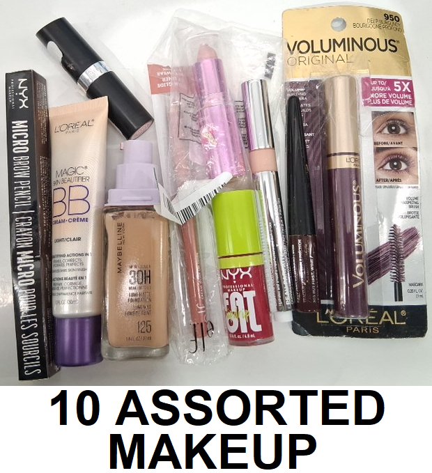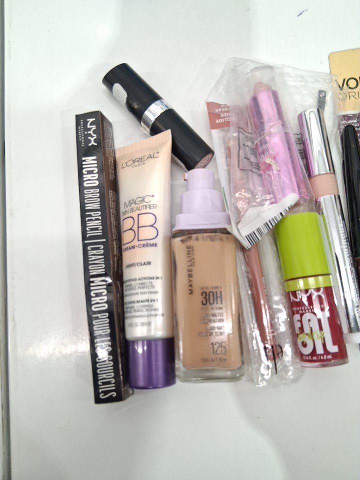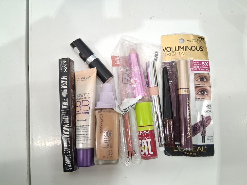 10 assorted makeup products - assorted brands, shades and types - brow pencil / bb cream / foundation / lipstick / lip oil / mascara / concealer / lip liner