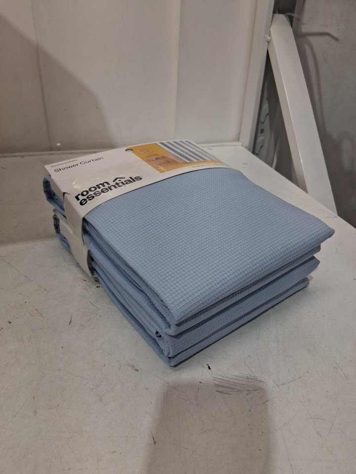 2pk ROOM ESSENTIALS MACHINE WASHABLE SHOWER CURTAIN - 72" X 72" - blue WAFFLE WEAVe