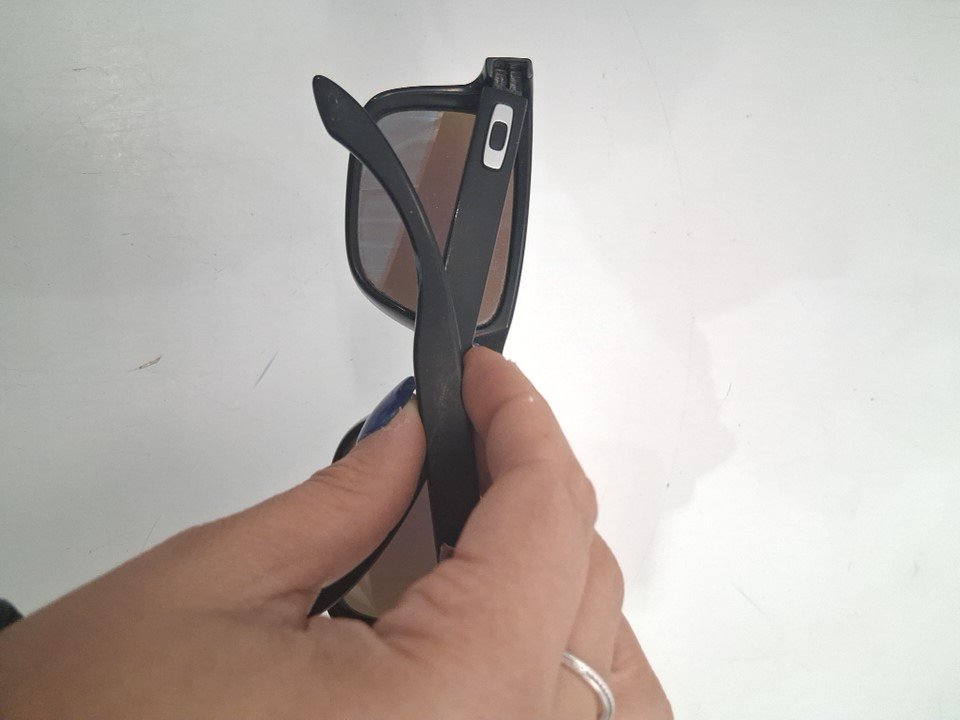 this item has been used previously , discoloration in the frame and a few scuffs on the lenses