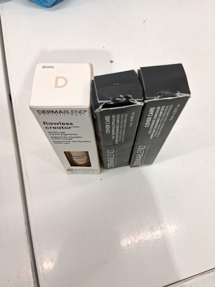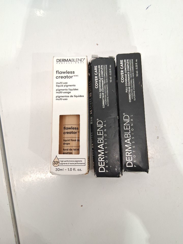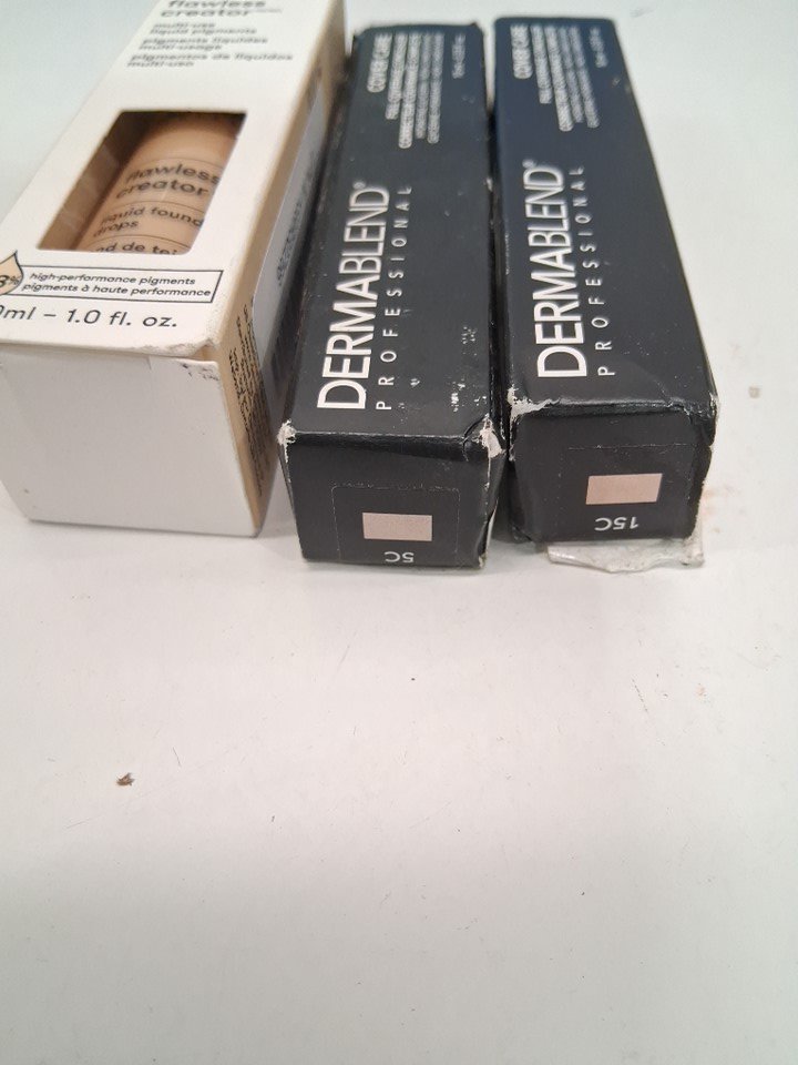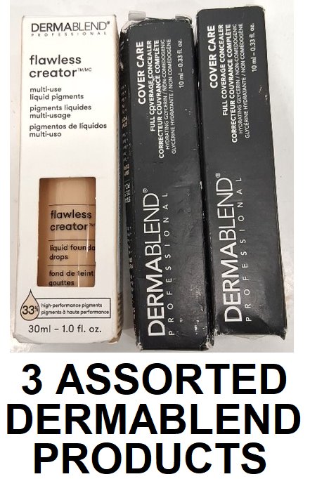 3 dermablend makeup products - assorted shades and finishes - liquid foundation drops / concealer