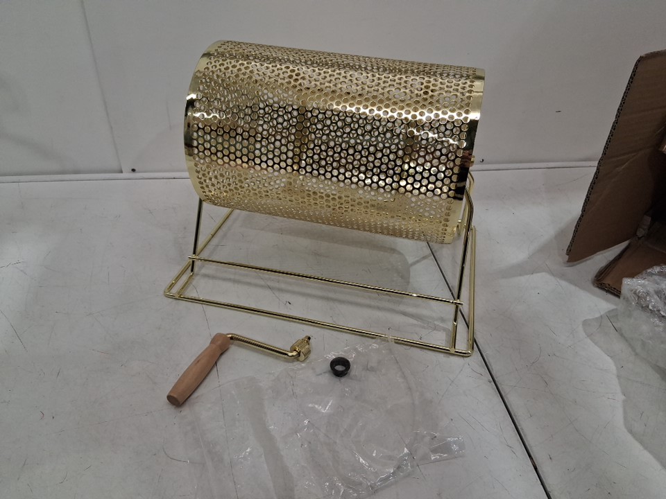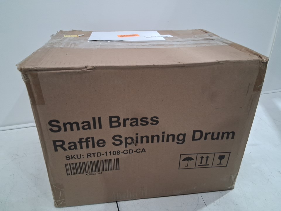 VIVOHOME Brass Plated Raffle Drum Lottery Spinning Drawing with Wooden Turning Handle - medium 16" x 12" - brass