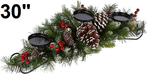National Tree Company Artificial Christmas Frosted Berry Centerpiece Candle Holder - 30" -