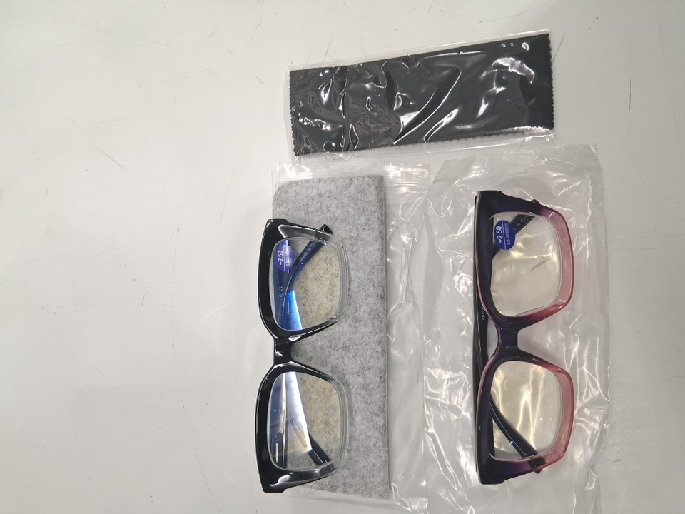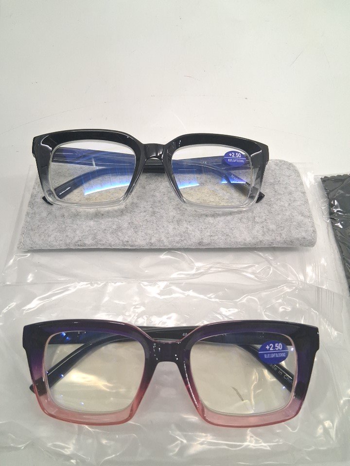 2pk arooth women's blue-light reading glasses with microfiber slips - clear/pink