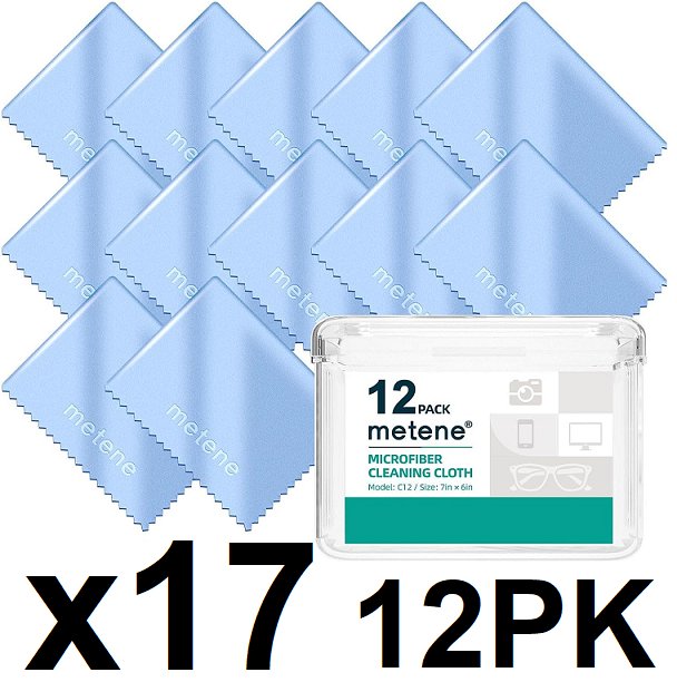 17 (12PK) Metene INDIVIDUALLY WRAPPED MULTIPURPOSE MICROFIBER CLEANING CLOTHS - FOR USE ON Eyeglasses, PhoneS , Screens, Camera Lens and Other Delicate Surfaces (204 TOTAL)